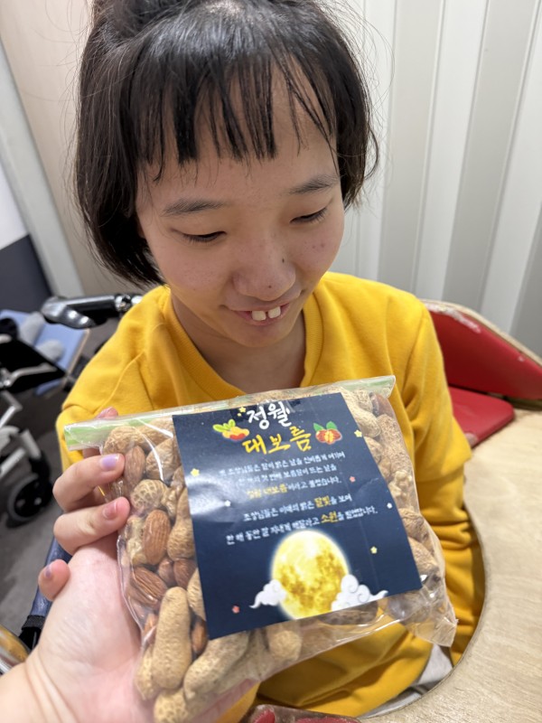 2026년 2월 26일_사회적응훈련(정월대보름 부럼깨기) 작성자 관리자 작성일 26-02-26 19:33 | 조회 37 본문 정월대보름을 맞아 부럼 깨기를 했습니다~ 땅콩과 호두 등을 예쁘게 포장하여 꾸며보았답니다o(* ̄▽ ̄*)ブ 목록