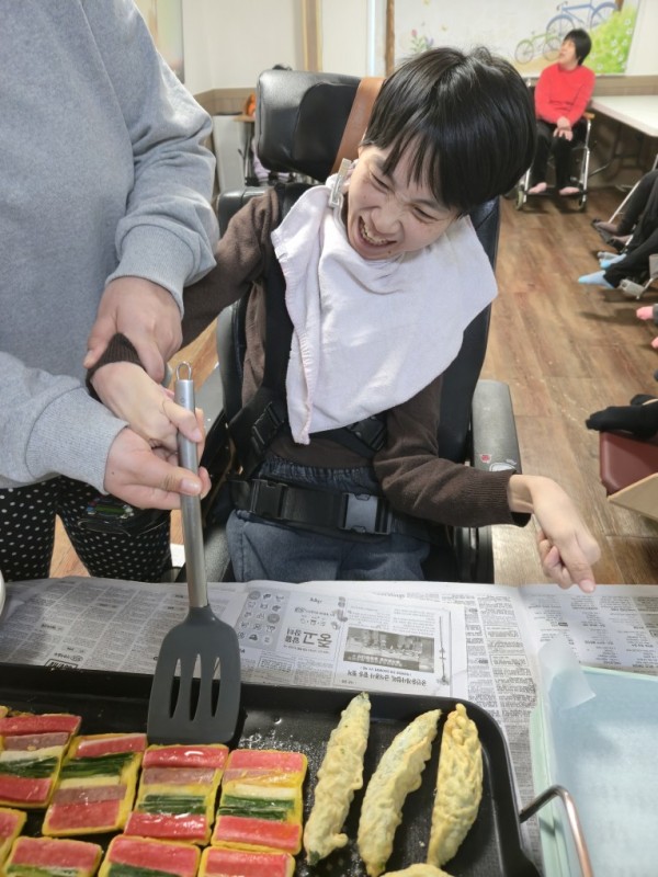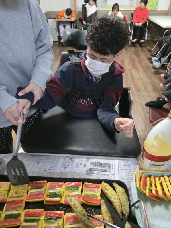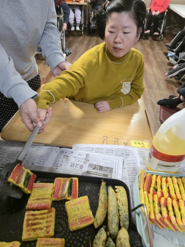 친구들과 선생님들이 서로 힘을 합쳐 맛있는 전을 부쳐보았는데