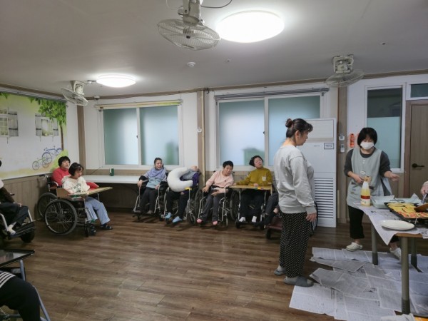 간식으로 다같이 나누어 먹으며 재미있는 사회적응훈련을 보냈습니다~