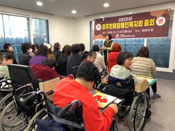 2025년 12월 17일_광주 희망장애인복지회 총회 작성자 관리자 작성일 25-12-17 21:40 | 조회 54 본문 2025년 12월 17일 광주 희망장애인 복지회 총회를 열고 뜻깊은 시간을 함께 했습니다~! 목록
