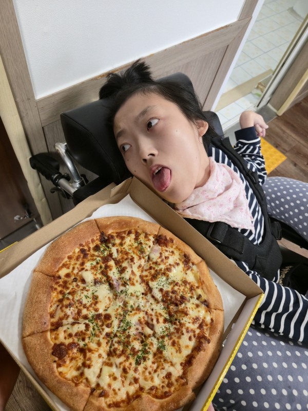 맛있는 딸기와 오렌지와 피자를 맛있게 먹었습니다~!